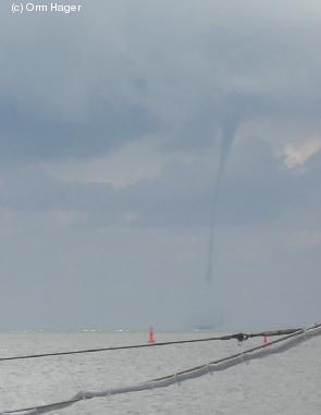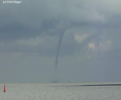 En el dia 10. de julio 2007 vimos alrededor de la una de la tarde un tornado frente a la isla de Norderney. El tornado empezo en mar abierta, y mas bien modesto.