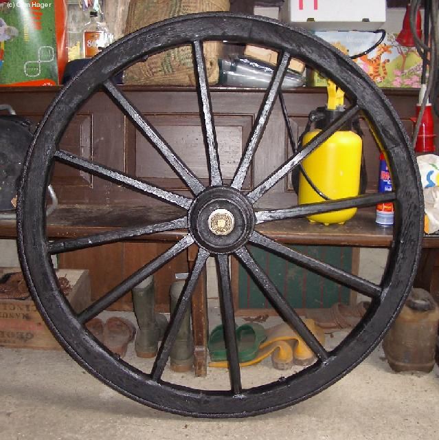 Meine Mutter hat ein altes Wagenrad aufgetan. Es hat gut 1.20 Meter Durchmesser.